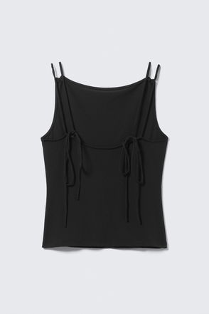 A slim fitted halter tank top crafted from a soft cotton single jersey enhanced with a touch of elastane for added comfort.