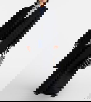 A striped oversized long-sleeve top made from cotton. It features a classic polo neck, a placket with three buttons and cuffed arms.