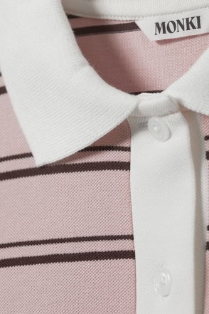 A striped oversized long-sleeve top made from cotton. It features a classic polo neck, a placket with three buttons and cuffed arms.