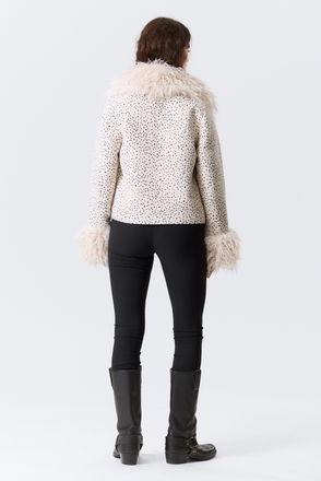 The Tabitha Faux Fur Jacket is all about its ultra soft material with a luxe shiny finish. Cut in an extra wide and oversized fit, it has a V-neck with big lapels, concealed snap on buttoning and two side pockets.
