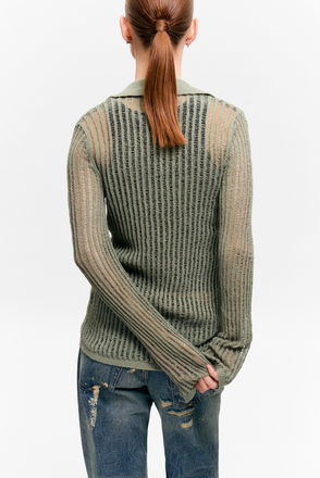 The model wears size S that measures 78 cm in chest circumference, 36 cm in length and 65 cm in sleeve length.