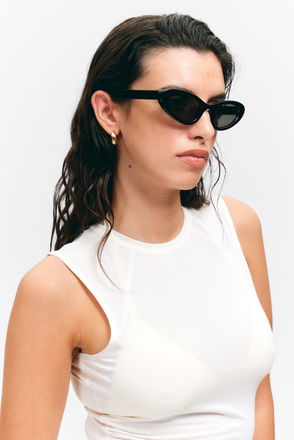 The Sail Cateye Sunglasses are a pair of statement shades with chunky plastic frames in a wide cat-eye shape. They have wide templates and come with different frames colours and matching lenses.