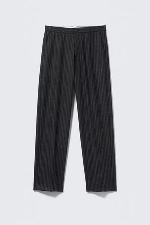 A pair of oversized tailored trousers made from a flexible recycled polyester enhanced with responsible viscose and a touch of recycled elastane. They have front pleats and back darts making them extra roomy, and front pressed creases for an extra tailored look.