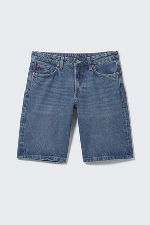 The Vision Denim Shorts have a medium waist and wide, cut-off legs with raw finishes. Made of organic cotton with a classic denim feel.