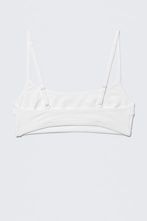 A soft bra crafted from stretchy cotton jersey with a pigment-dyed wash for a lived-in look. Designed with a scooped neckline and unadjustable straps, it features a double-layered front with darts for subtle shaping. Finished with clean edges for a smooth feel and a hook-and-eye closure at the back.