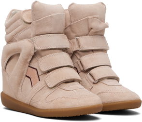 Low-top mesh, calfskin suede, and buffed calfskin sneakers in tan.