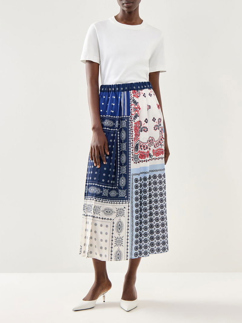 The Weekend Luna Pleated Printed Skirt features a stylish pleated design combined with a vibrant print, offering a versatile addition to your wardrobe. Its lightweight fabric ensures comfort and ease of movement, making it perfect for casual outings or weekend wear. Pair it with a simple top for an effortlessly chic look.