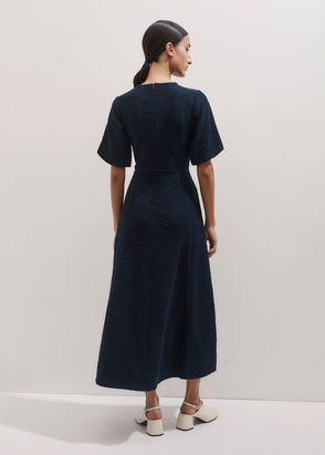 Description: T-shirt-style dress featuring a figure-skimming straight cut and short set-in sleeves. Featuring a spotted motif print on pure silk crepe de chine, the dress falls to maxi length and includes in-seam side pockets. Fastens with a small button keyhole detail at the back. Materials: 100% Silk Product Code: 113658836