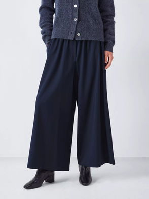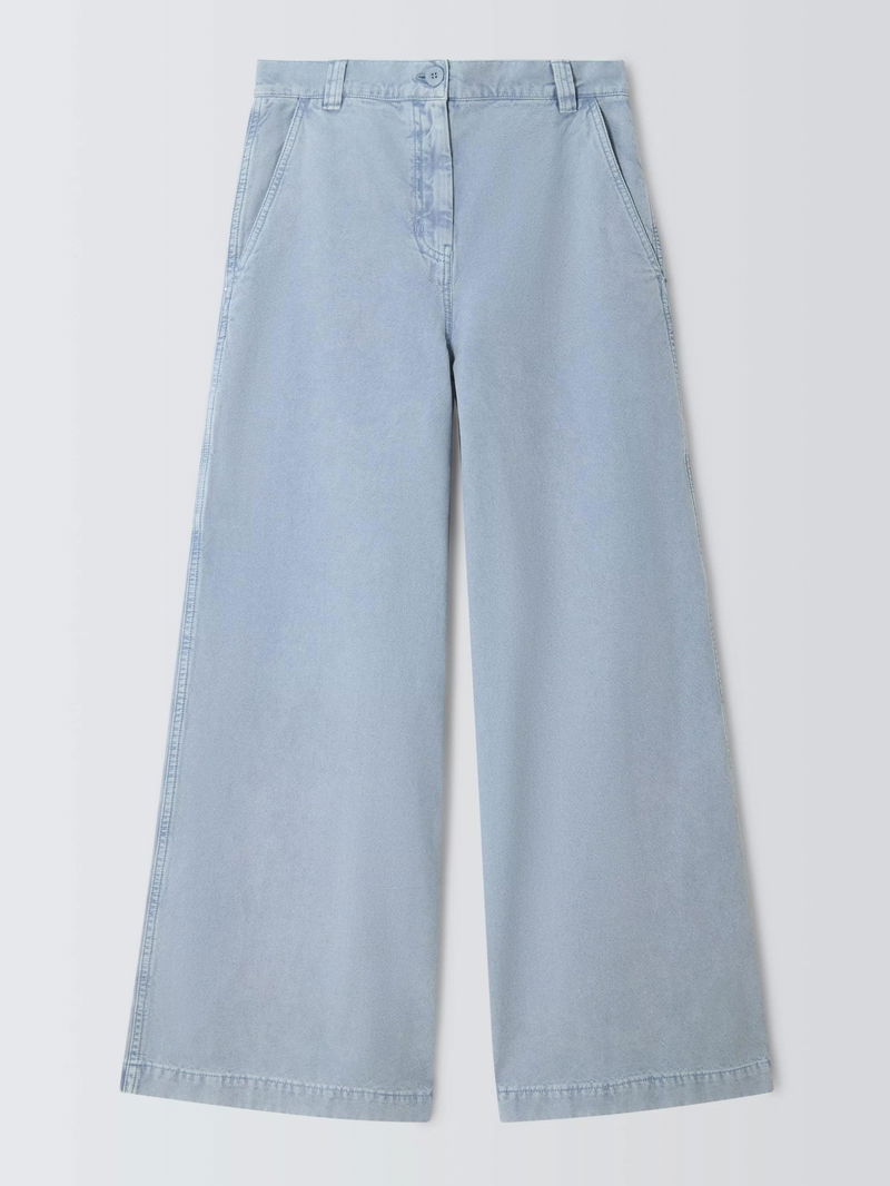 A pair of wide-leg, regular-fit trousers by Weekend MaxMara, made from a light denim. They feature a mid rise with a button fastening and a longer length.