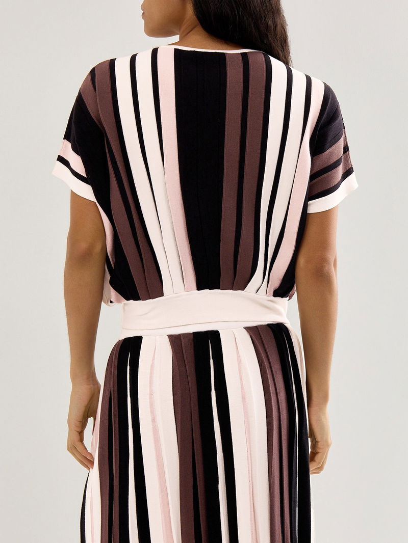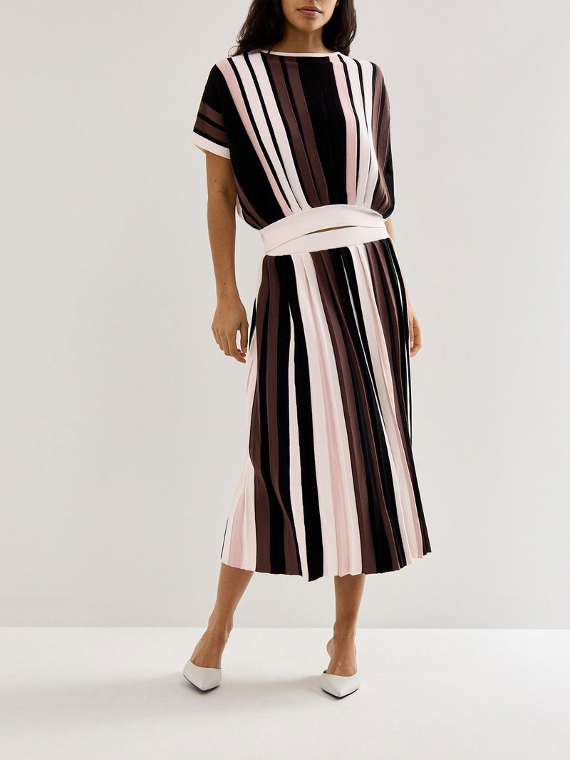 The Weekend Pegola Striped Knit T-shirt offers a comfortable fit with its soft knit fabric and classic striped design. Perfect for casual wear, this T-shirt combines style and ease, making it an ideal choice for relaxed weekends or everyday layering. Its breathable material ensures all-day comfort.