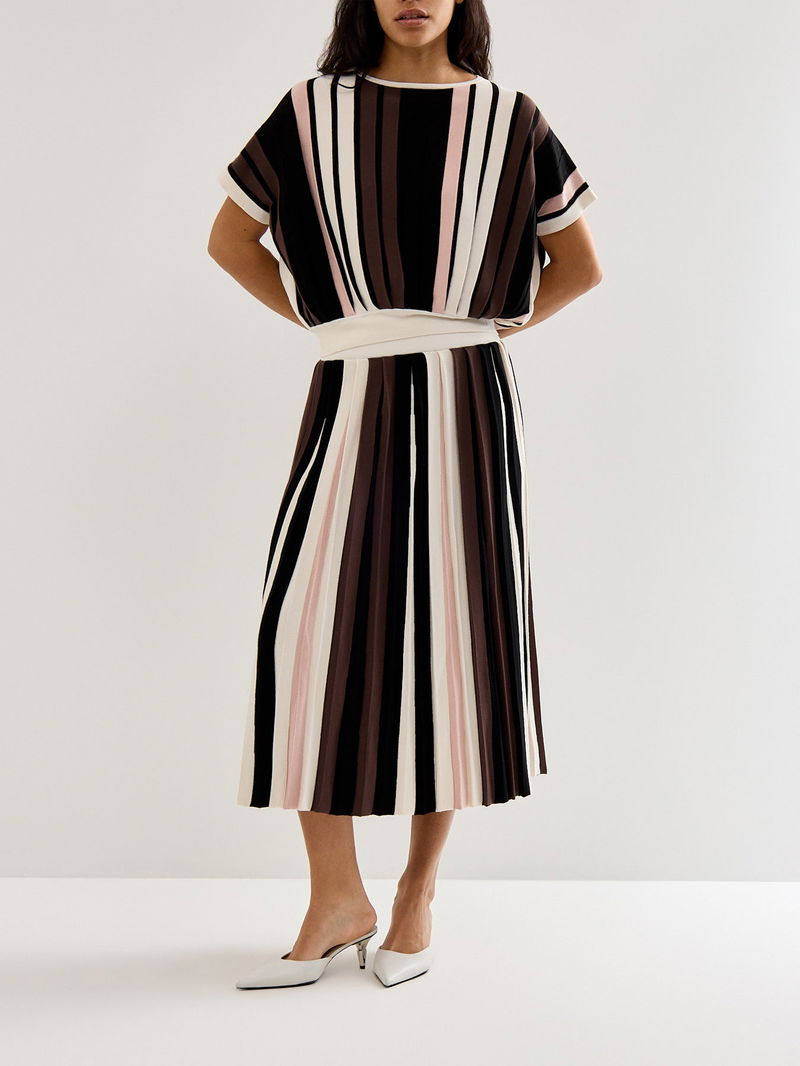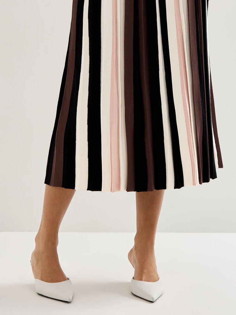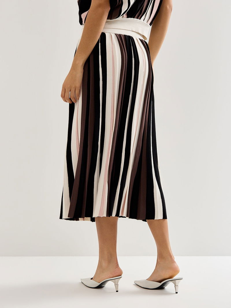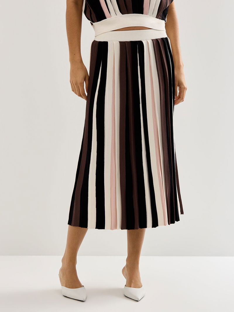 The Weekend Pleiadi Striped Knit Skirt combines comfort and style with its soft knit fabric and classic striped pattern. Designed for versatile wear, this skirt offers a flattering fit that moves with you, making it ideal for casual outings or relaxed weekends. Its breathable material ensures all-day comfort while adding a touch of effortless chic to your wardrobe.