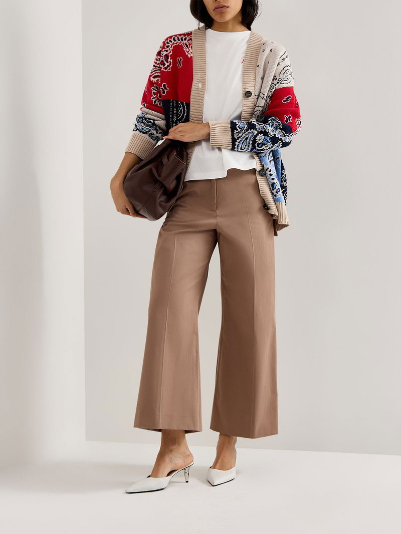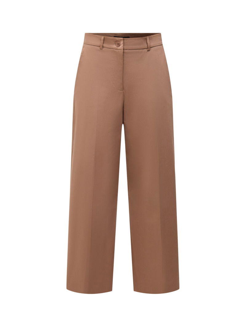 These tailored wide-leg cropped trousers offer a modern silhouette with a comfortable fit. Designed for versatility, they combine a polished look with relaxed style, making them ideal for both casual and smart occasions. The cropped length adds a contemporary edge, perfect for pairing with various footwear. Crafted to provide ease of movement, these trousers are a stylish addition to any wardrobe.