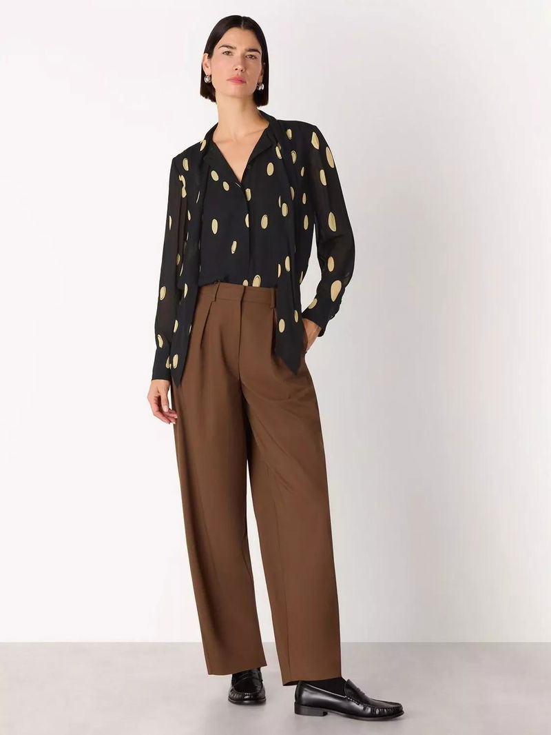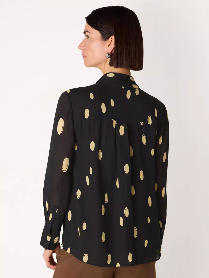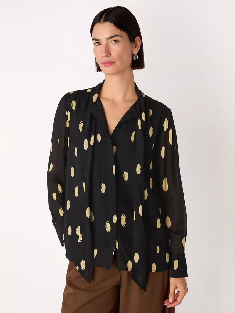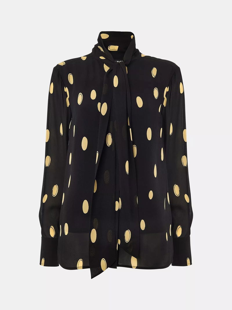 Abstract Spot Tie Neck Blouse