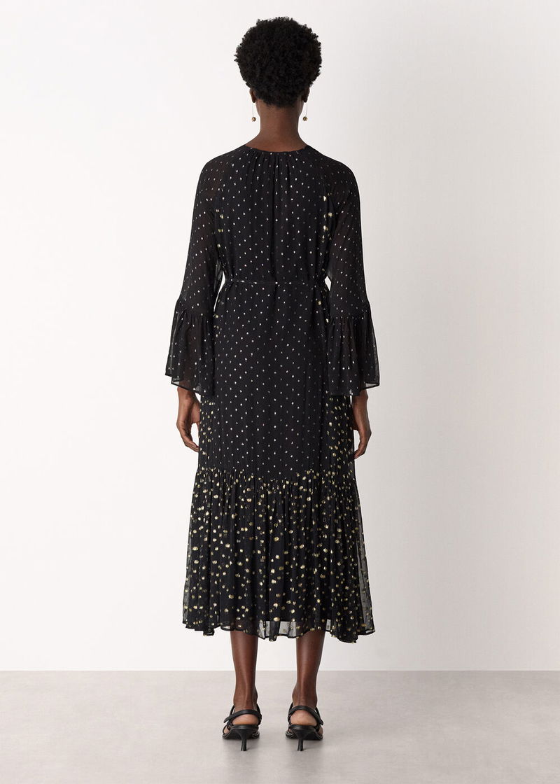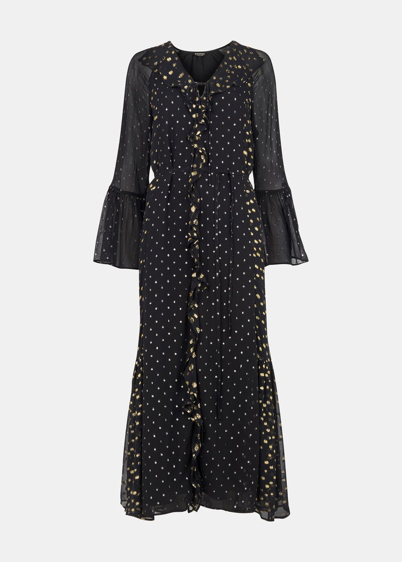Black/Multi Metallic Dobby Ruffle Dress