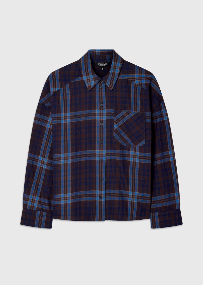 Blue/Multi Checked Brushed Cotton Shirt