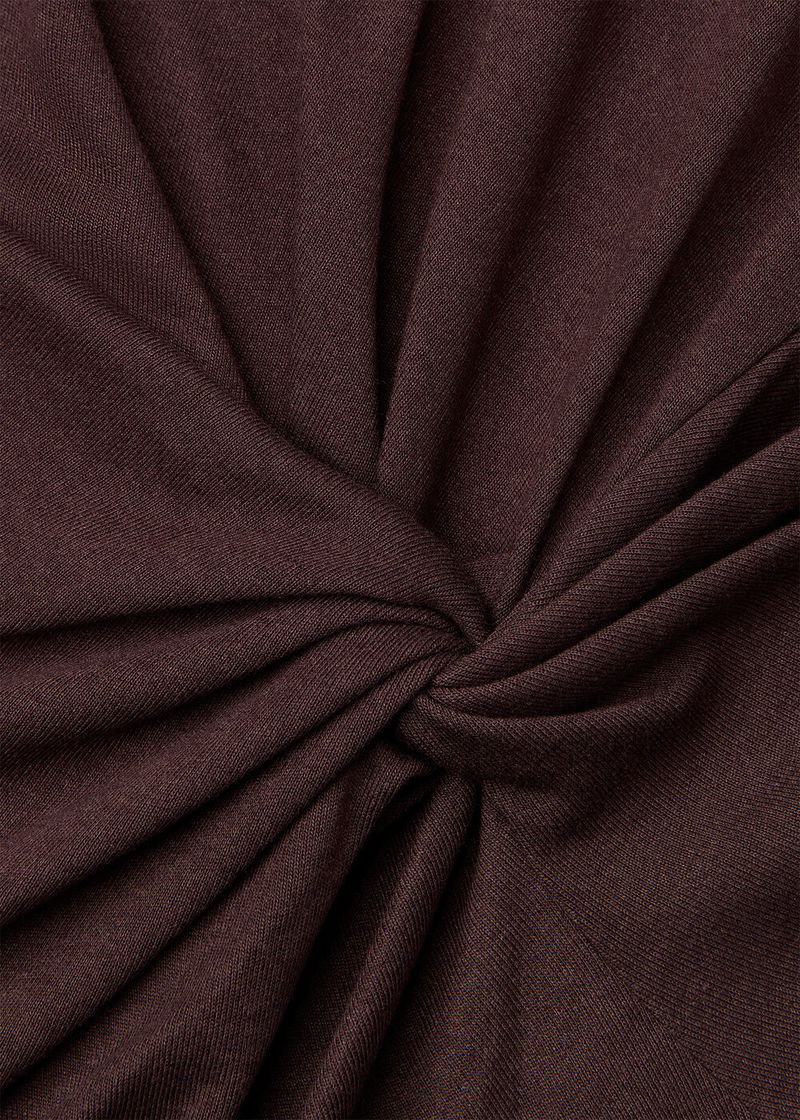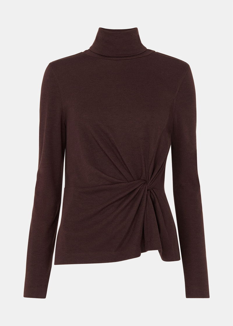 Our roll necks return this season with a fresh, contemporary touch. The Roll Neck Twist Front Top, crafted in a warm brown hue with a stretchy, comfortable fabric, features an eye-catching front twist detail. A versatile autumn essential, it’s perfect for dressing up or down for any occasion.