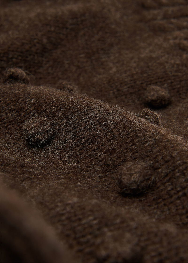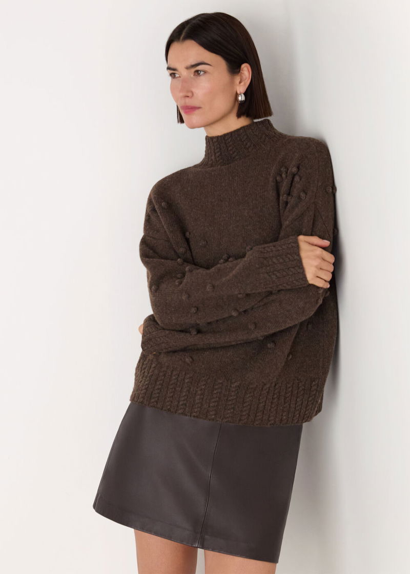 Our Design Team redefines knitwear through a modern lens this season, and our Wool Irregular Bobble Knit is the perfect example. It’s knitted from a wool blend in a sophisticated brown hue, complemented with a relaxed fit, chunky cable knit trims and irregular bobble details for a subtle, playful take on a wardrobe classic.