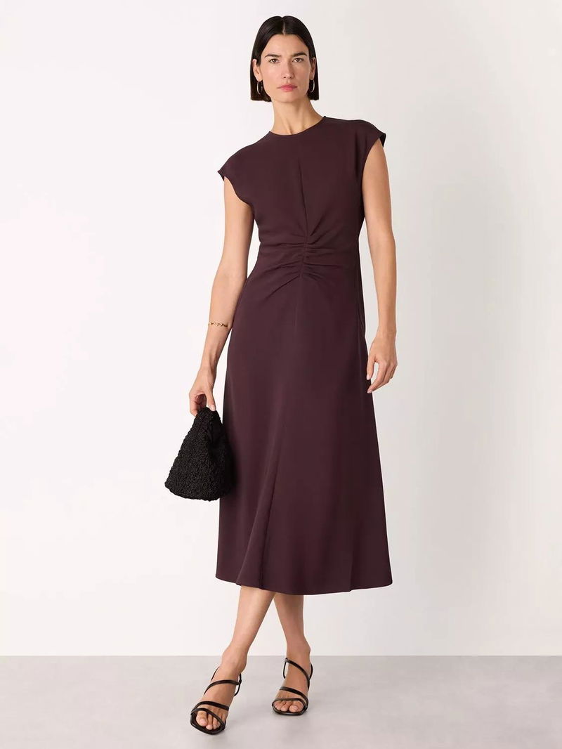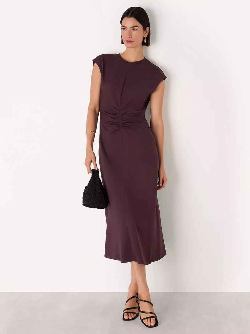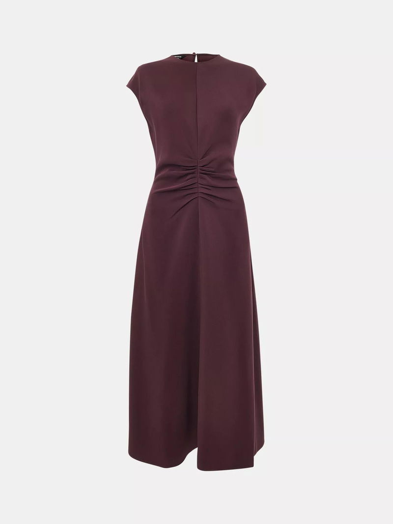Cap Sleeve Gathered Midi Dress, Burgundy