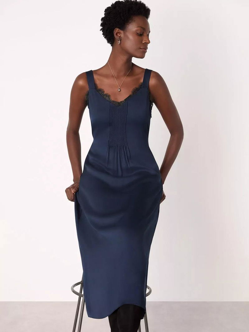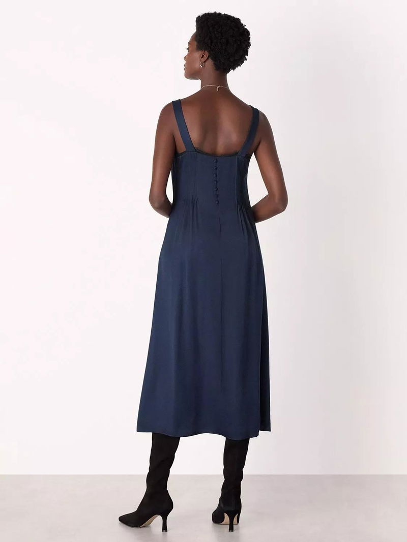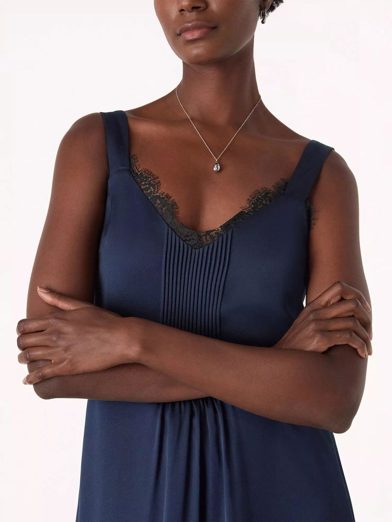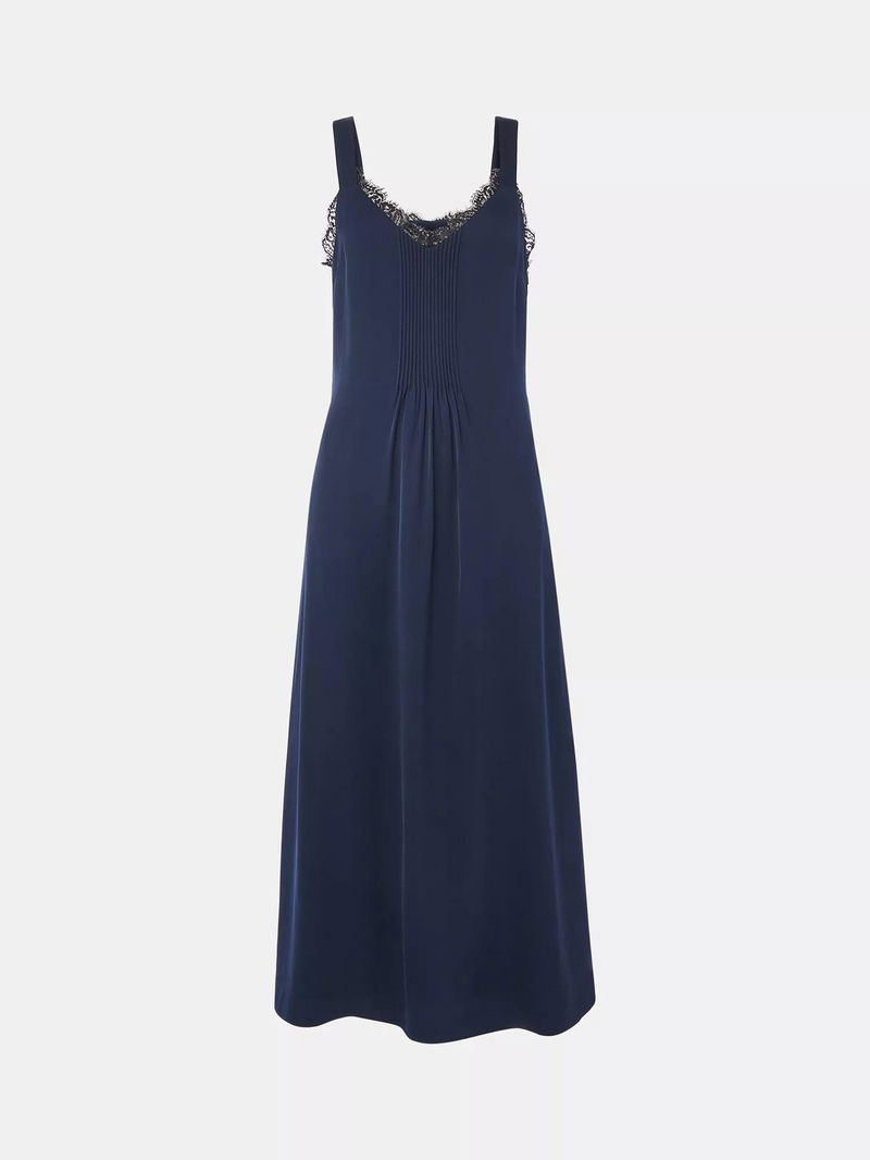Crepe Lace Trim Cami Midi Dress, Navy/Multi