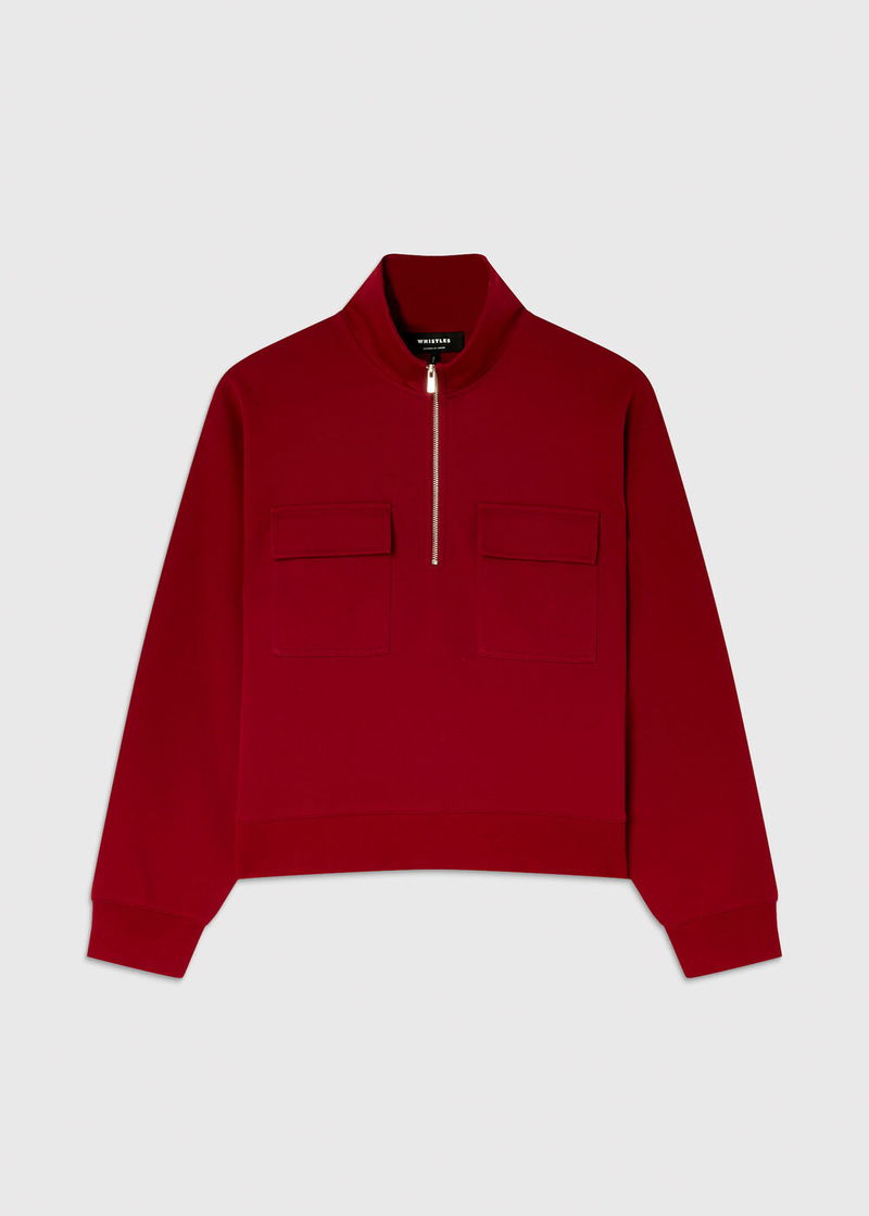 Bridging casual elegance, comfort and a subtle nod to sports, our Funnel Quarter Zip Sweat is the perfect piece to wrap yourself in for effortless daytime style. Designed with a vibrant pop of dark red, it instantly brightens your look. Style it with contrasting colours to build interest, and wear it zipped up or down. Finished with a quarter zip, funnel neck, and practical chest pockets, it’s a staple piece you’ll keep reaching for.