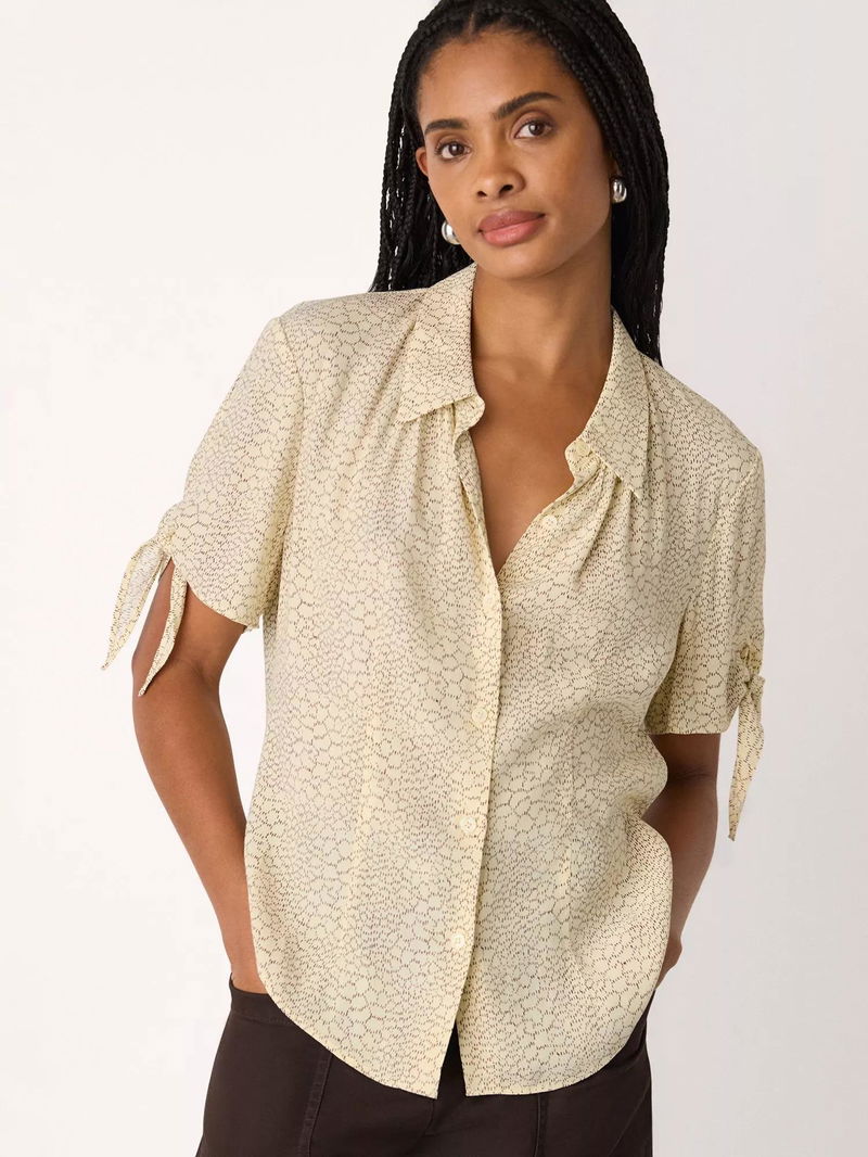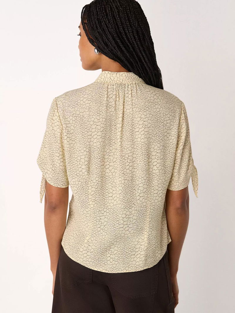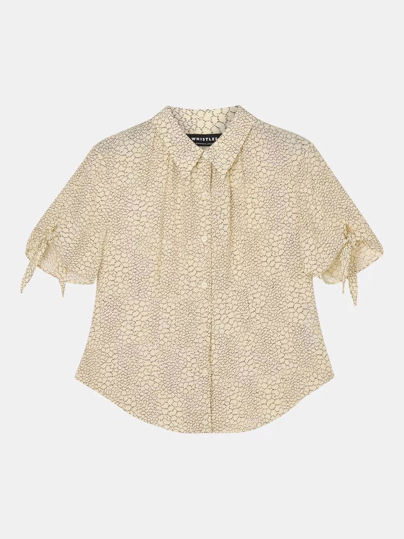 A shirt by Whistles. With short tie detail sleeves, it's awash with an abstract pattern. Effortless style for daily dressing.