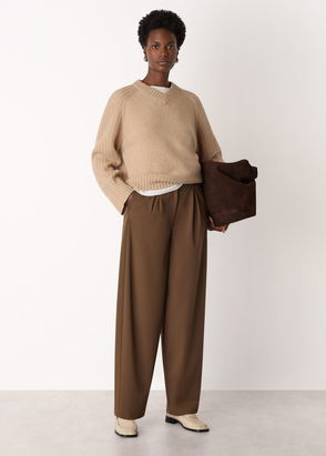 In an elegant full length, these trousers feel modern yet will last a lifetime. Designed in a deep chocolate shade, they come with stitching details on the leg and look elevated with everything from chunky boots to heels.