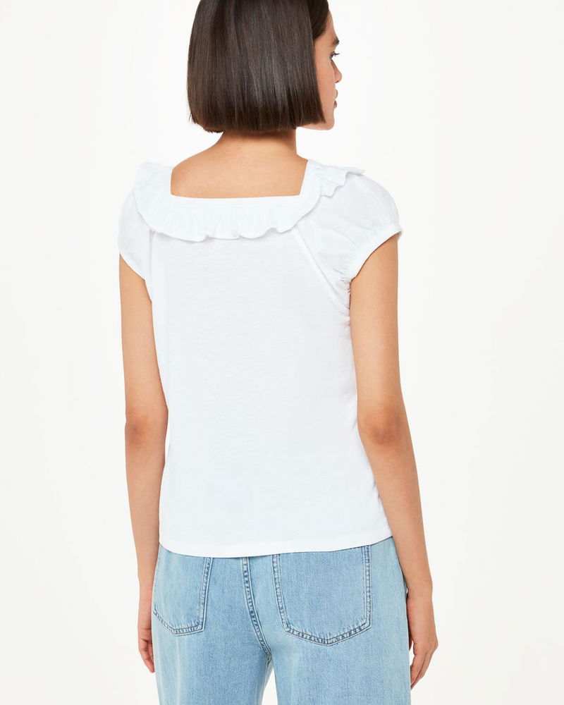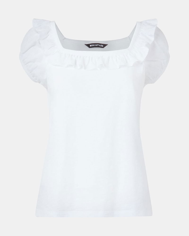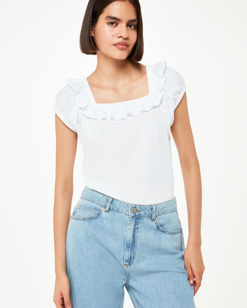 Invest in tops you can wear with everything this season, starting with this easy neutral staple. 100% crafted from breathable cotton, this top boasts a chic square neckline and frilled details. Style it with everything from jeans and trousers to midi skirts this season.