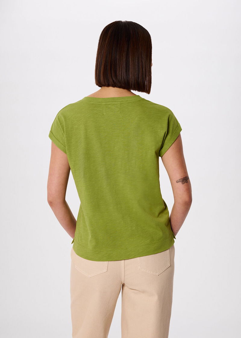 No wardrobe can have too many tees and the Willa is an easy wardrobe staple that you'll wear again and again. It’s crafted from soft, comfortable cotton in a shade of green, complemented with its relaxed fit, upturned cap sleeves and timeless V-neck collar.