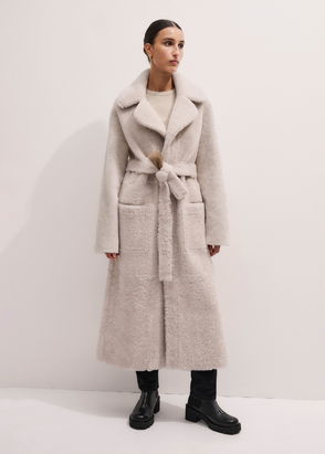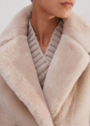 Make a bold statement with this luxurious shearling jacket in an ivory shade. The design features a unique patchwork of sheepskin in varying textures and lengths to stunning effect. Details include a loose fit, wide sleeve, inserted pockets and a hook and eye fastening. Style with smart tailoring and off-duty denim.