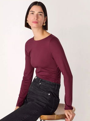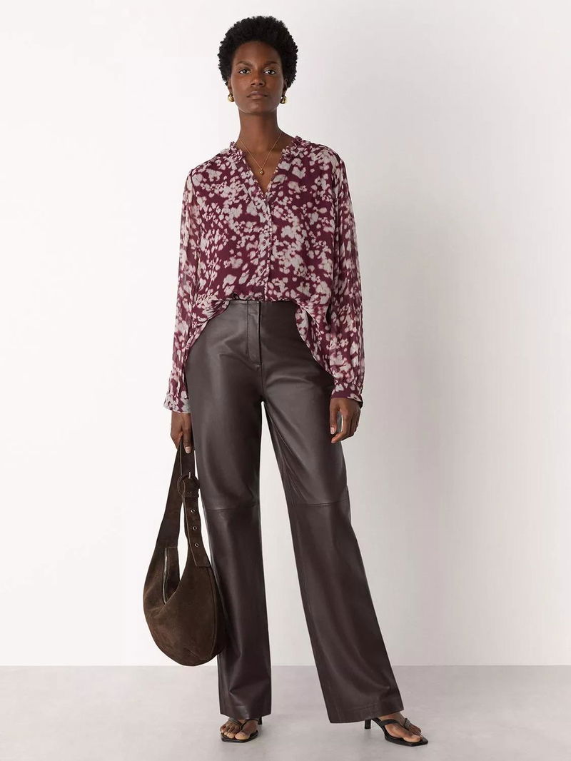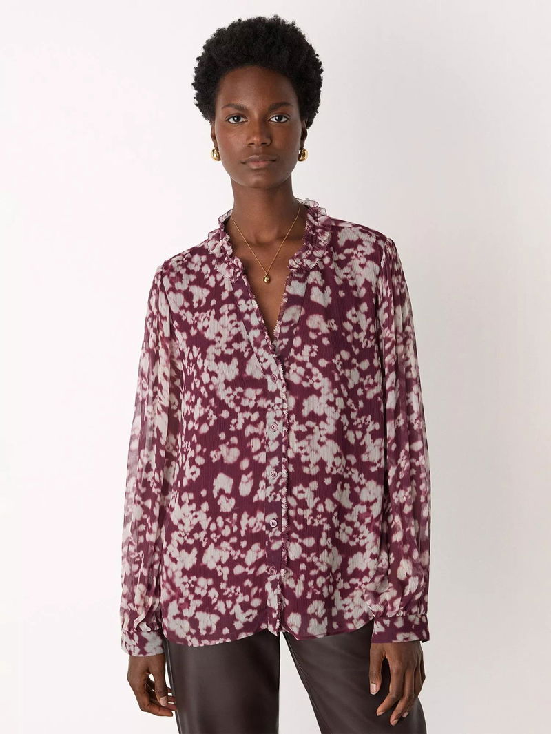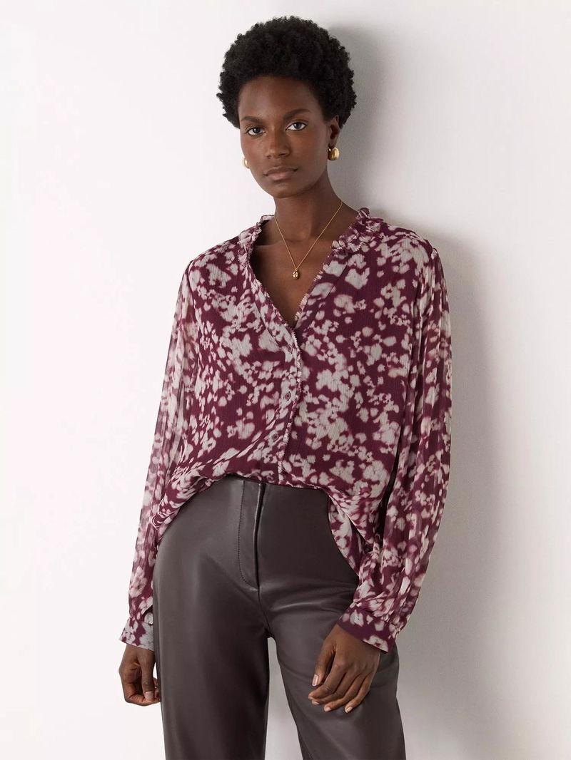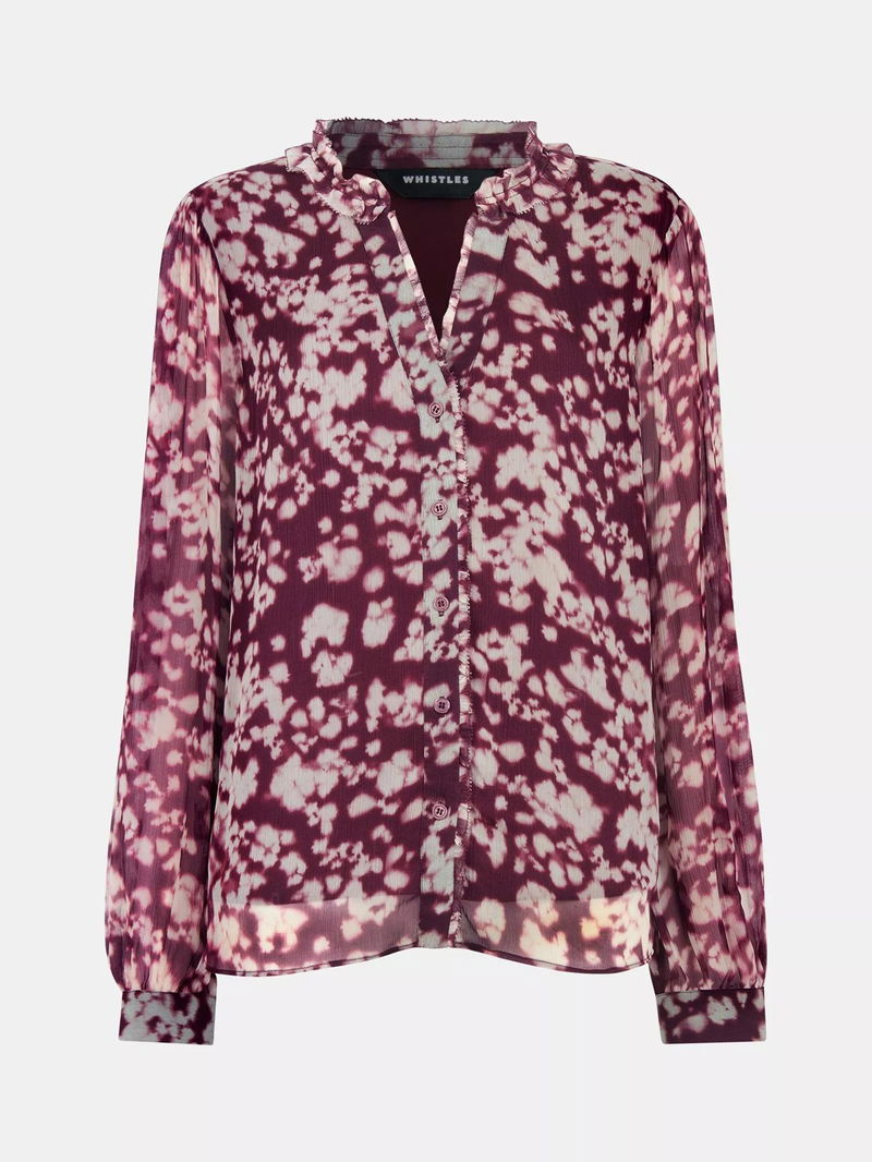 Inky Floral Long Sleeve Top, Burgundy/Multi