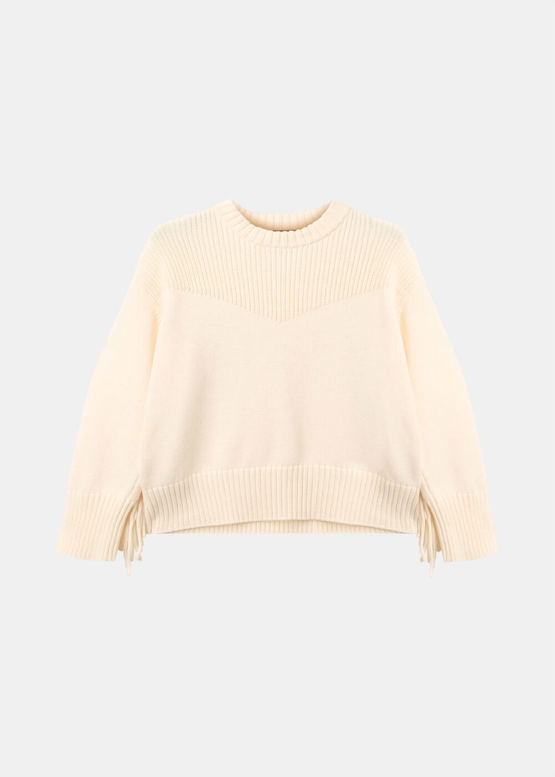 Ivory Fringe Rib Detail Cotton Knit