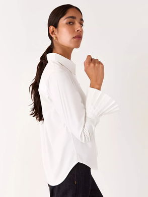 Embrace the sophistication of the Lyla Bow Sleeve Shirt, ideal for both daytime and evening celebrations. Crafted in ivory with a hint of transparency, it features a classic collar and short sleeves, each finished with a delicate bow. A timeless addition to elevate your wardrobe.