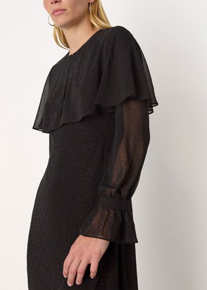 Designed in a flattering empire line cut, this midi dress from Whistles is blended with viscose for a weightless feel. With a v-neckline and semi-sheer long balloon sleeves with a fitted cuffs, it is doused in a dotted metallic stripe print.
