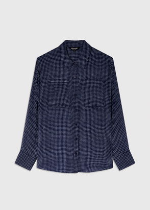 Update your occasionwear rotation with the Metallic Stripe Shirt, ideal for after-dark events and evening celebrations. In classic black with metallic dobby-spot stripes, this shirt features an effortlessly relaxed silhouette. A high neck, button-fastening front and semi-sheer blouson sleeves add the finishing details.