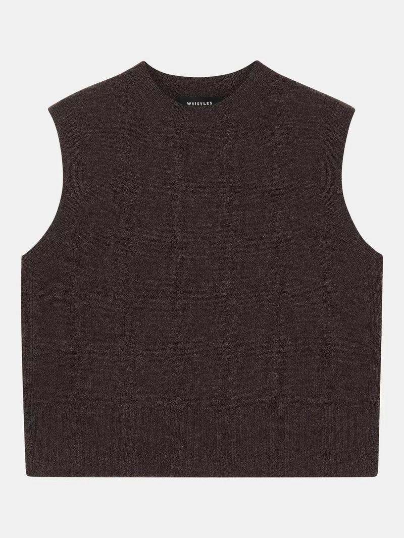 Pure Wool Sleeveless Tank Top, Brown