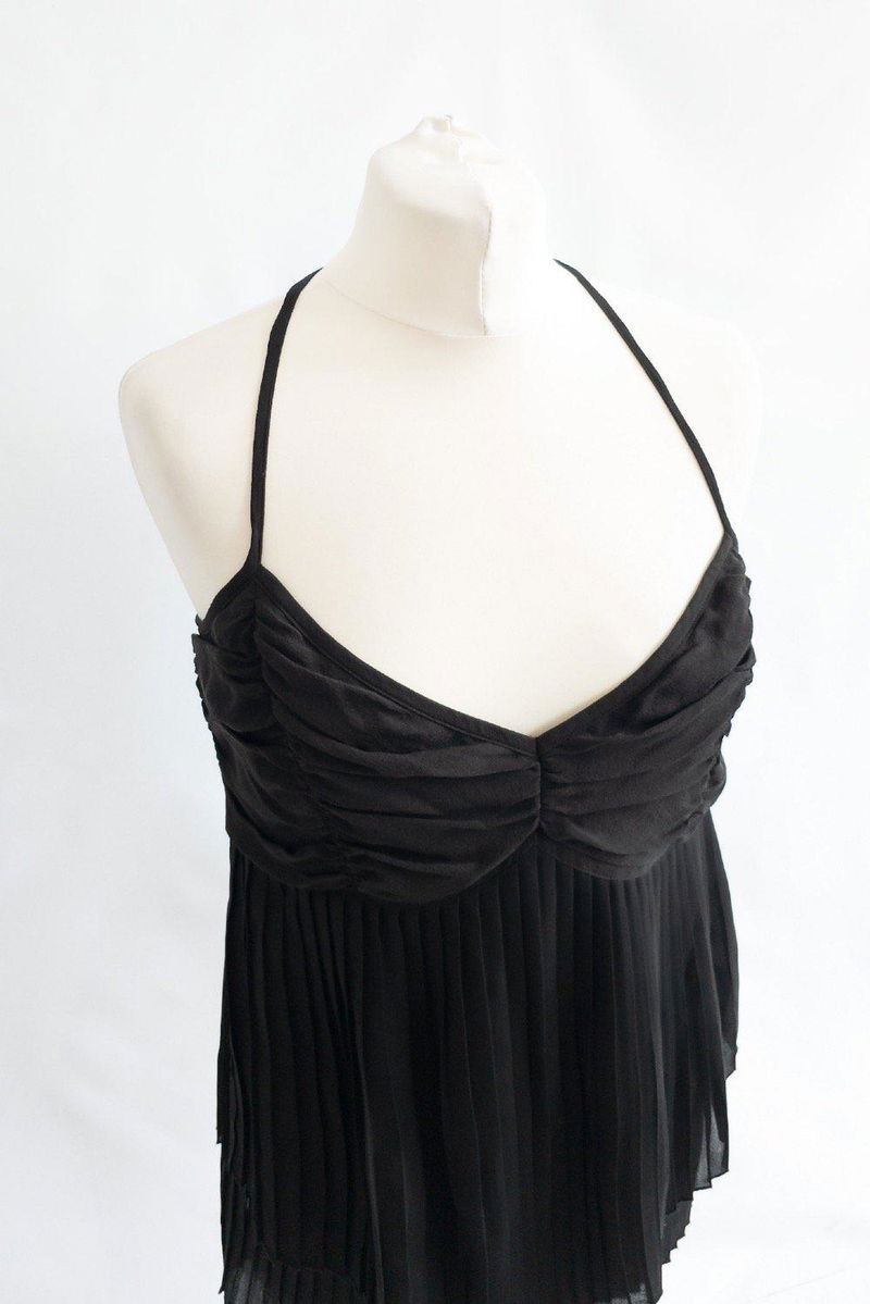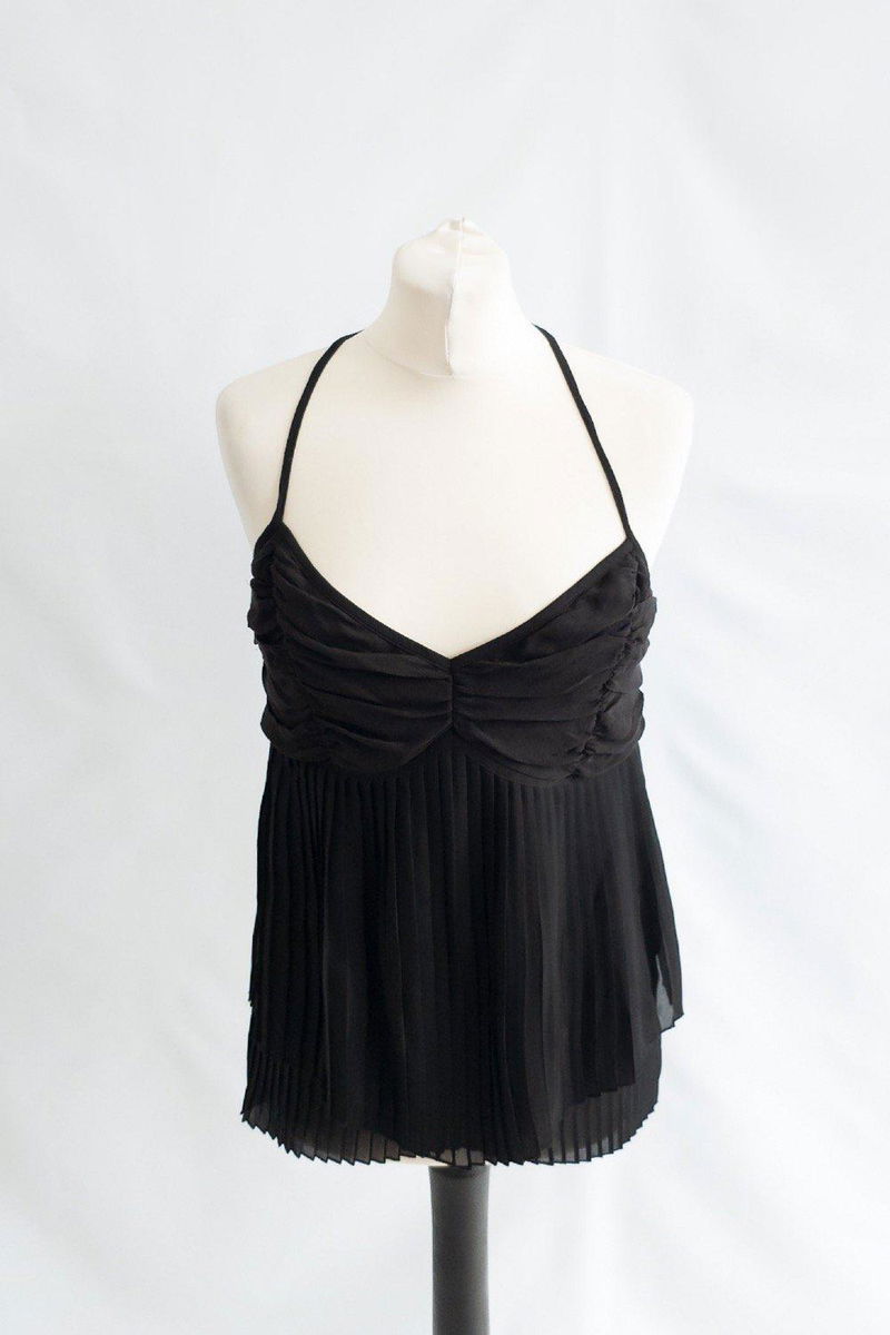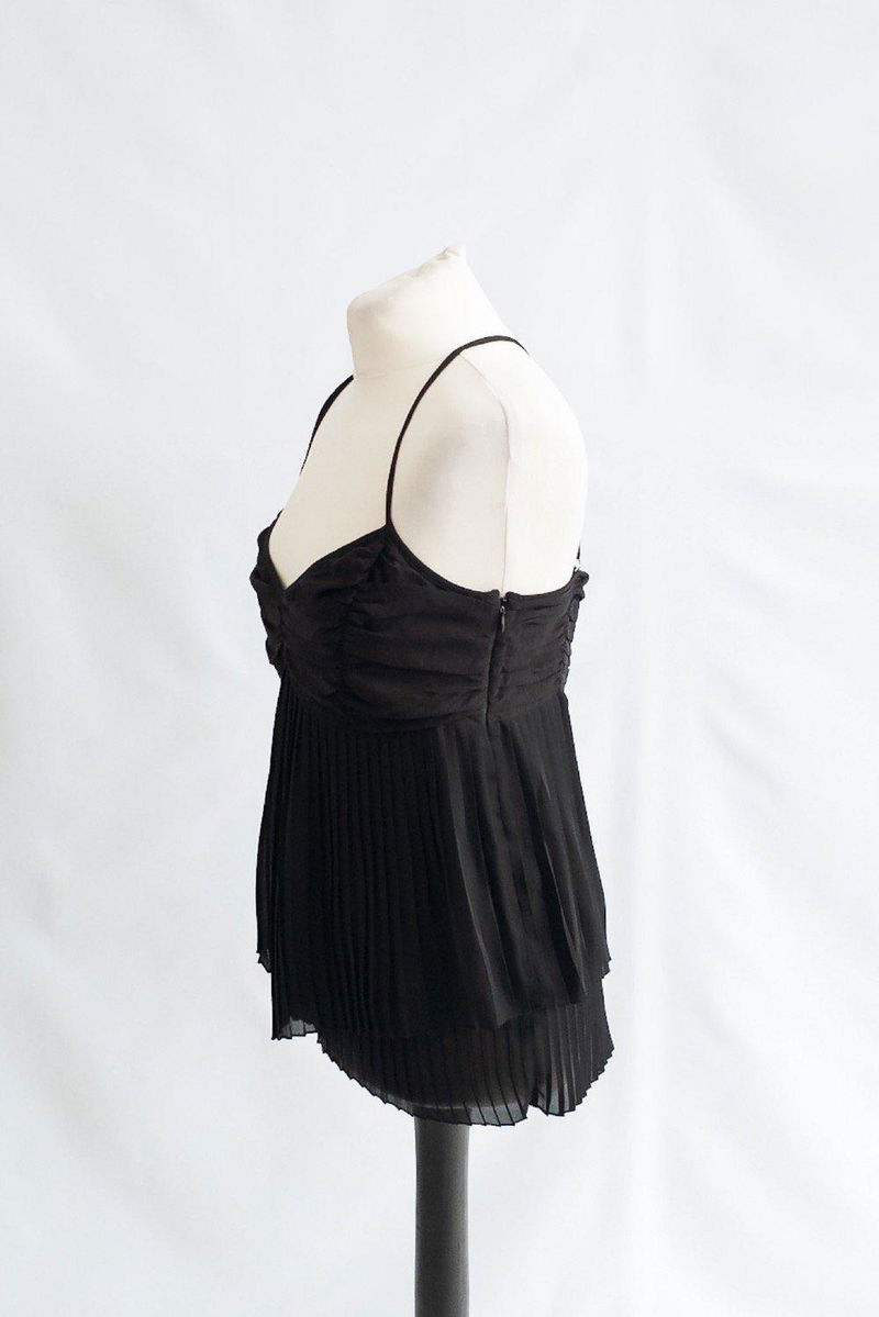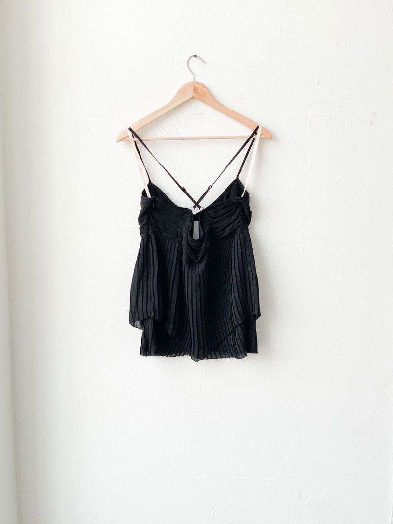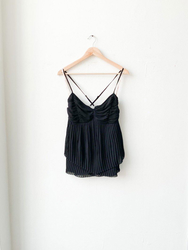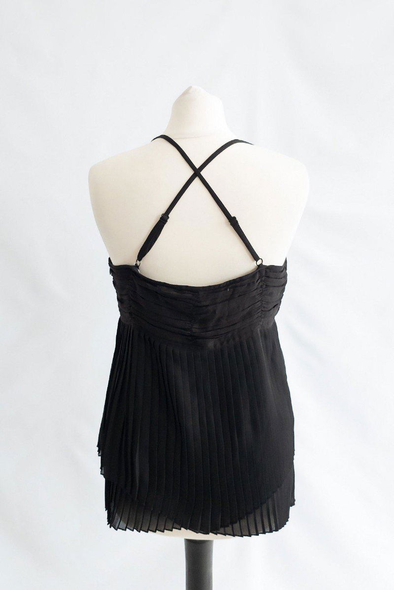 This black pleated babydoll top features an adjustable cross back, layered and pleated detailing and ruching detail on bralette. It has a straight cut, relaxed fit and is lightweight.