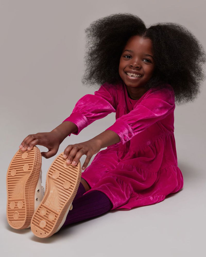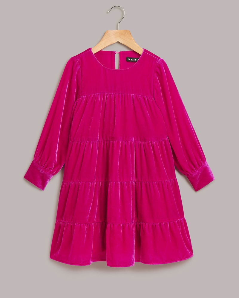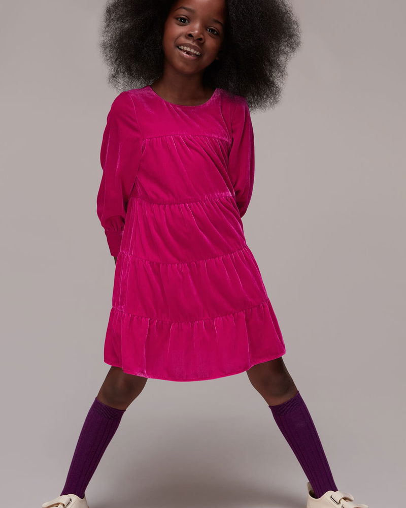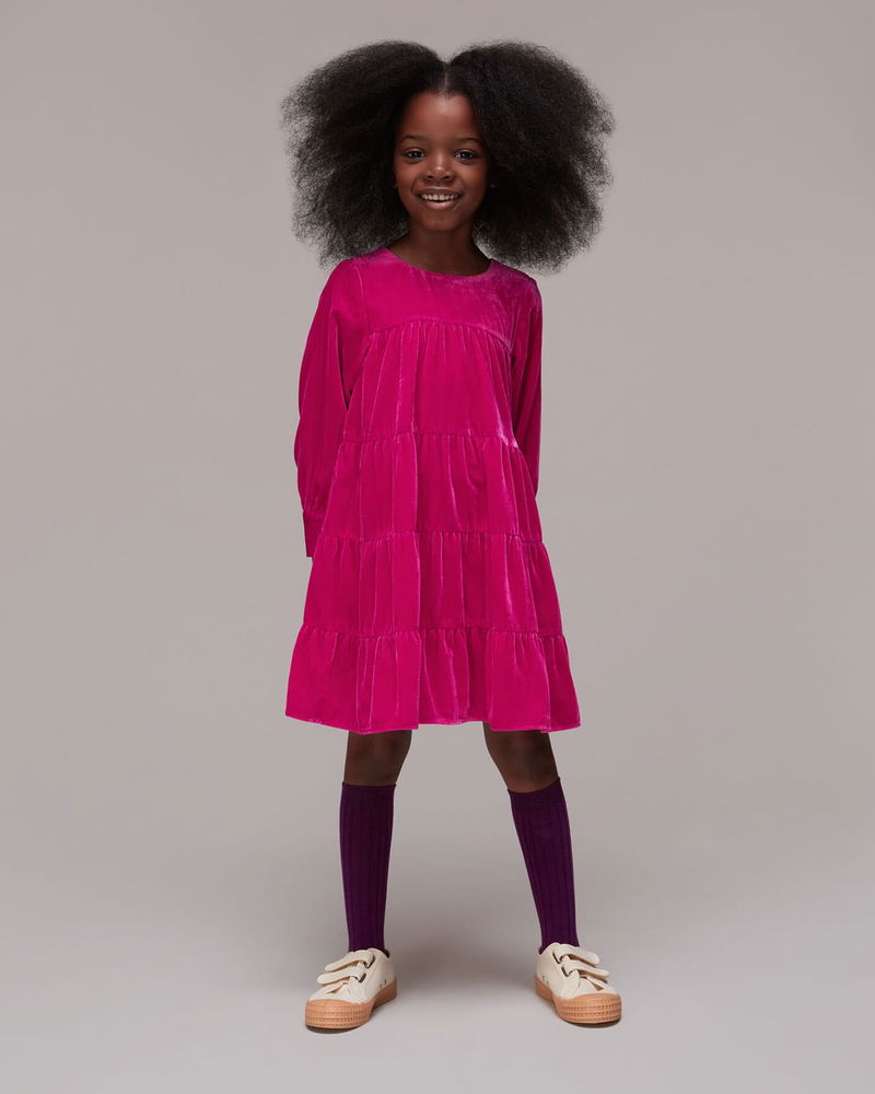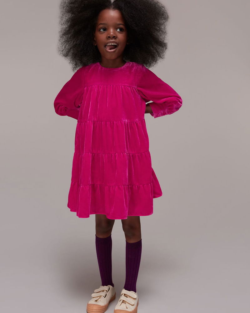 Crafted from an easy-to-wear velvet cotton, this relaxed fit dress with a tiered, gathered silhouette is perfect for the winter season. A perfect addition to your little ones’ wardrobe, complete this look with trainers for days on-the-go or miniature Chelsea boots for smarter occasions.