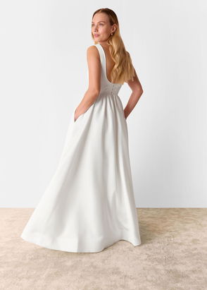 The Scarlett elegantly combines a vintage-style, high neckline with contemporary details – see the lace-effect short sleeves, dramatic cut-out back detail and sleek, body-skimming skirt with graduated train. Simple yet sophisticated, this dress makes for an effortlessly chic statement.