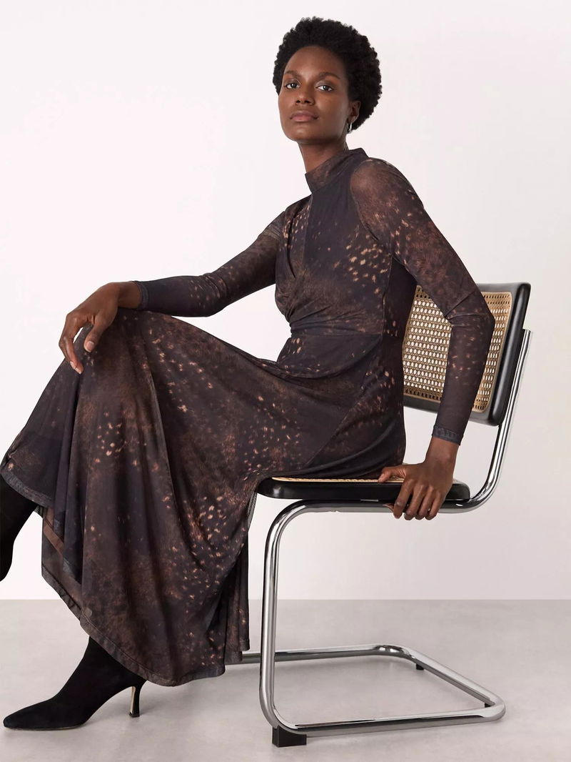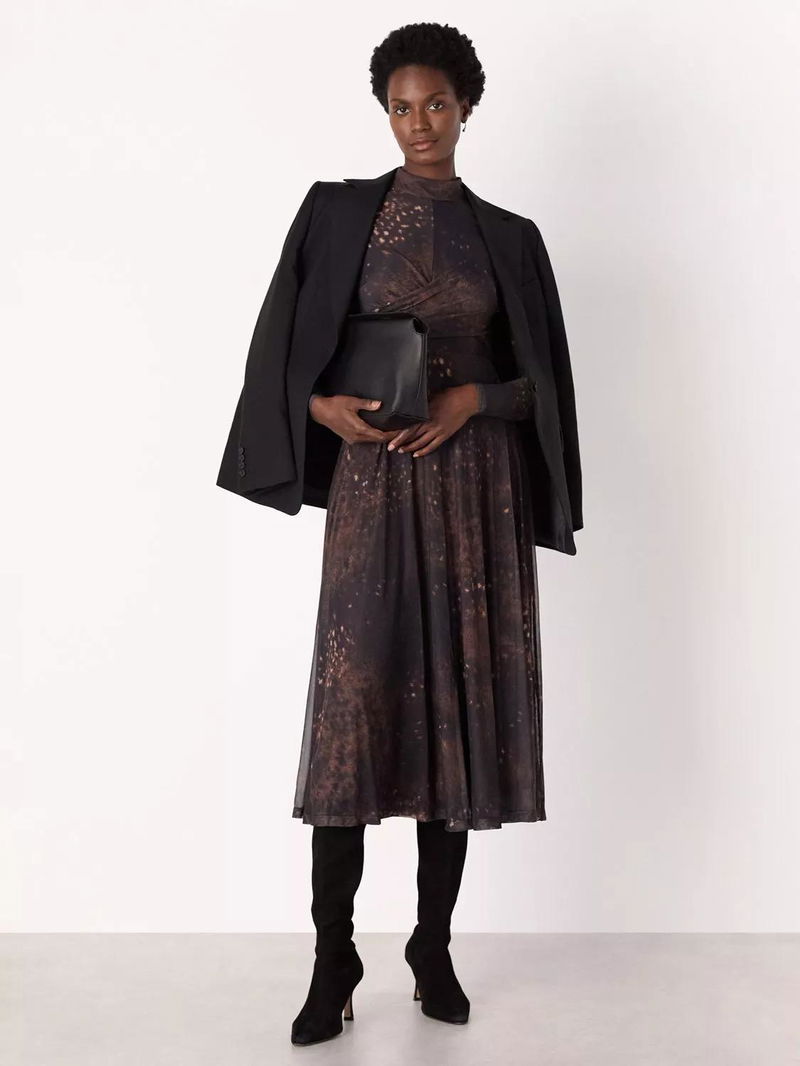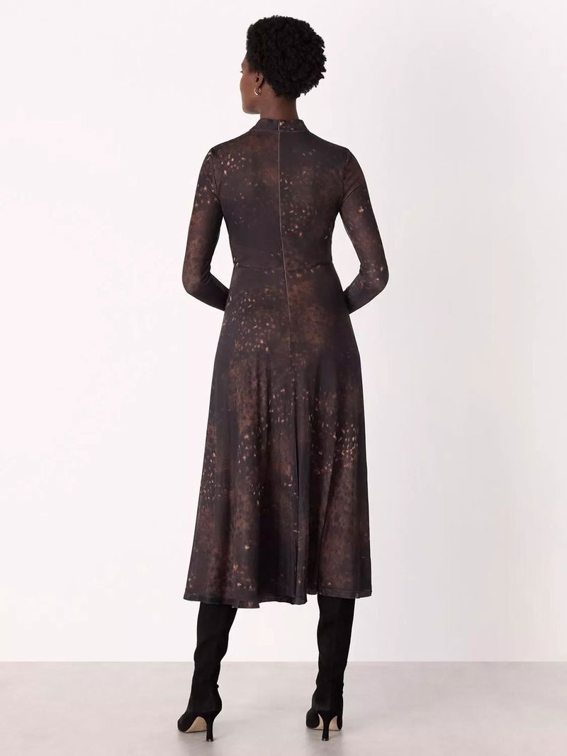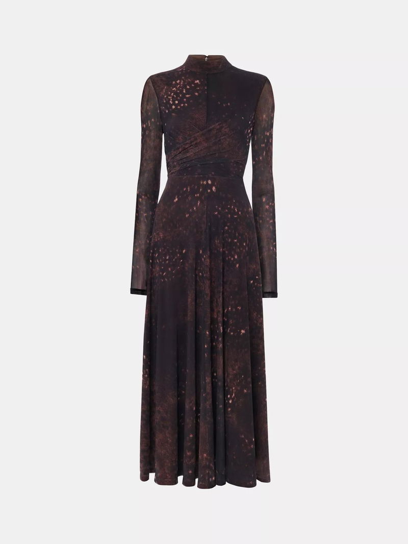 Spotted Animal Mesh Flared Midi Dress