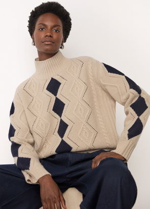 This knit has been crafted from a cotton blend and the neutral colour makes it easy to style with everything. It's relaxed, loose fitting and comes with a cosy funnel neck. Wear with light-wash denim and leather boots for polished weekend style.