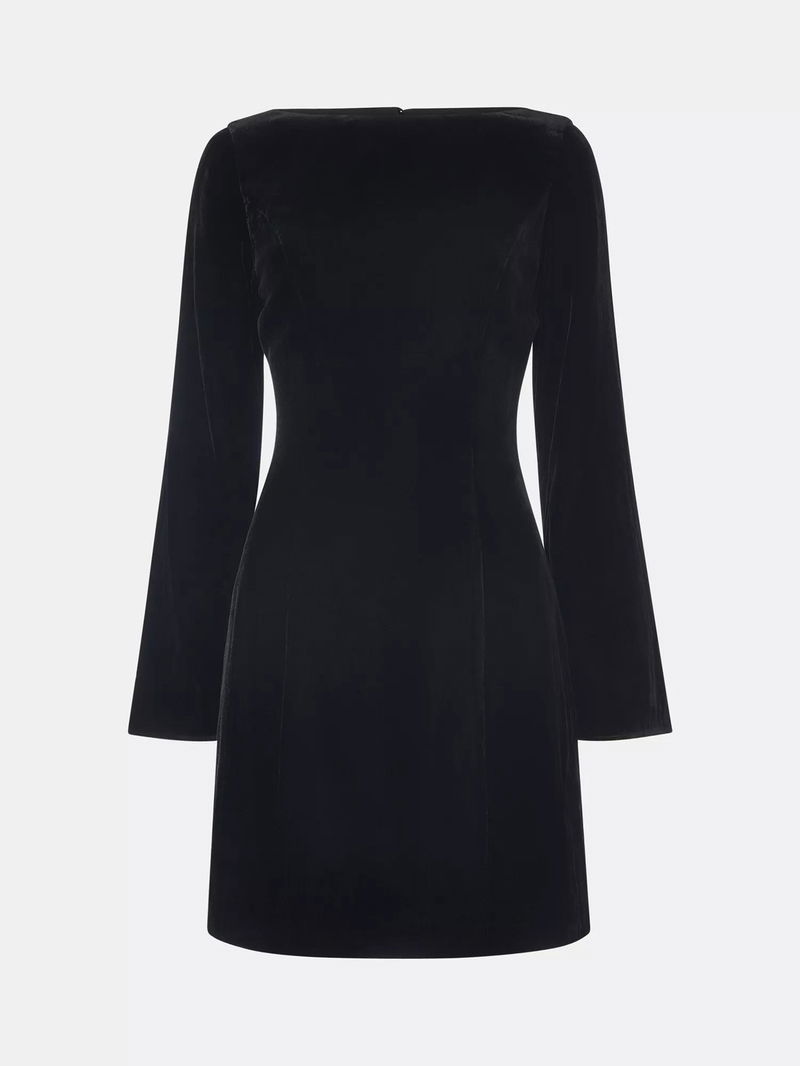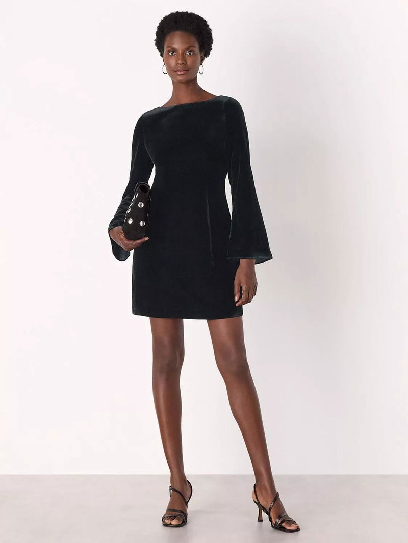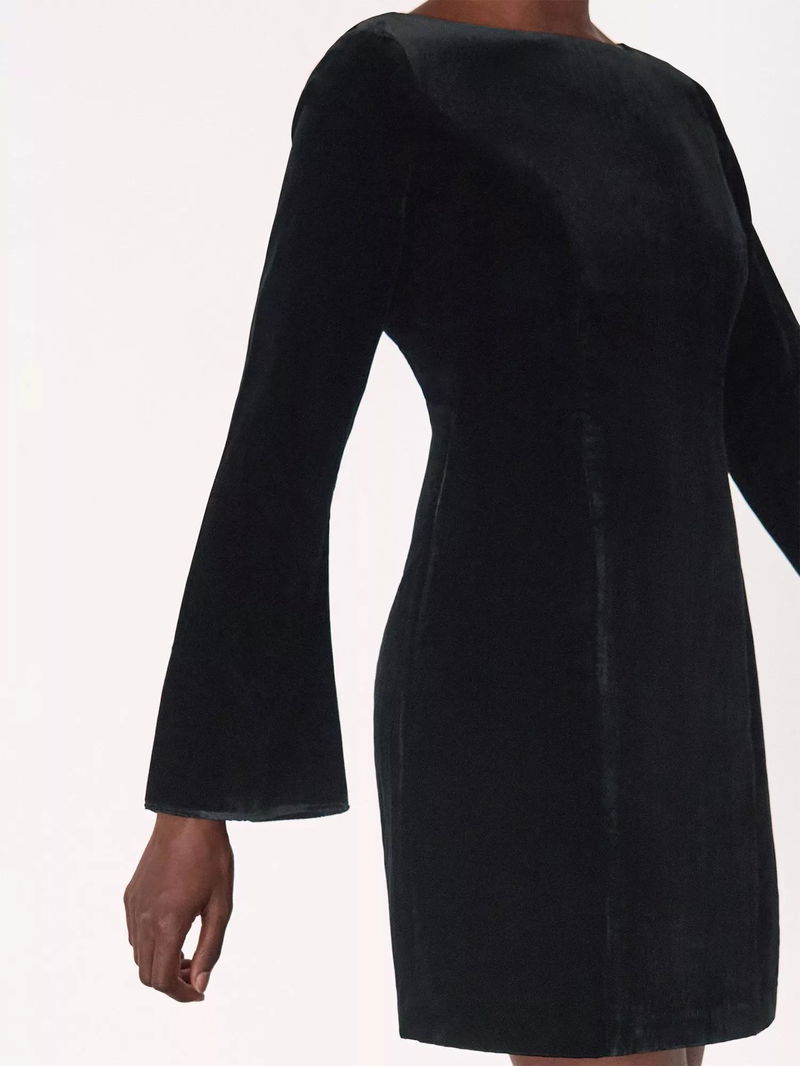 Velvet Flared Sleeve Mini Dress, Black