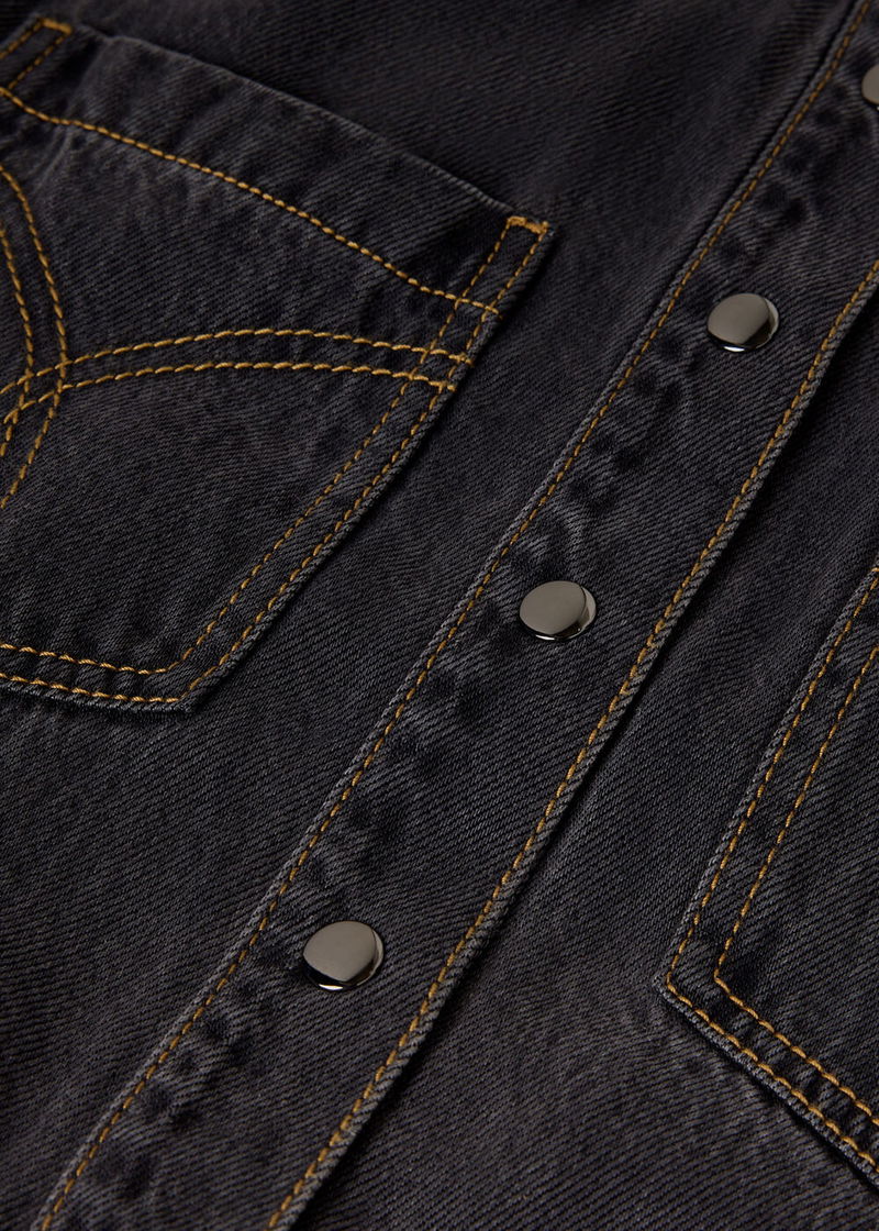Washed Black Cotton Blend Denim Jumpsuit