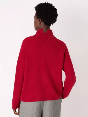 The Wool Funnel Neck Knit is the epitome of timeless style and warmth, perfect for when the chill sets in and the colder months take over. Drenched in a rich, vibrant red, this standout piece elevates your casual wardrobe. The elegant funnel neck offers both style and protection against the cold, while the ribbed detailing on the neckline, shoulders, hem, and cuffs adds a refined finishing touch. A truly versatile and enduring wardrobe essential.