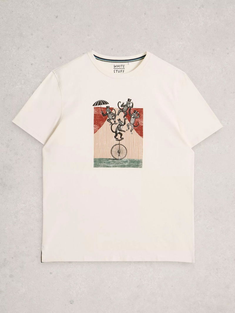 Abersoch Cotton Regular Fit Monkey Graphic T-Shirt, White