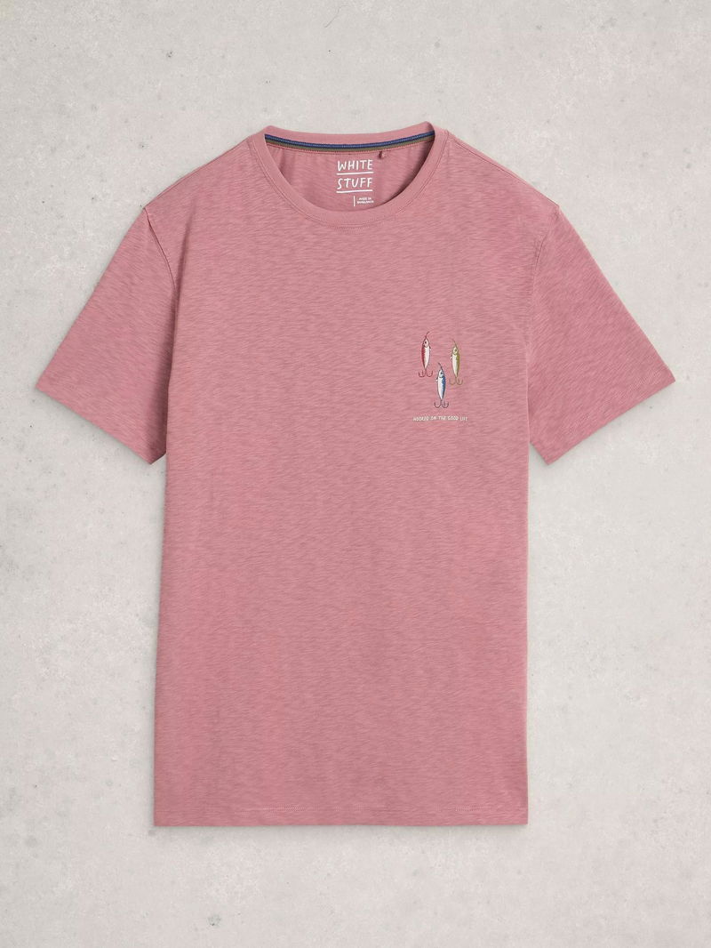 Abersoch Cotton Regular Fit Sardine Graphic T-Shirt, Pink