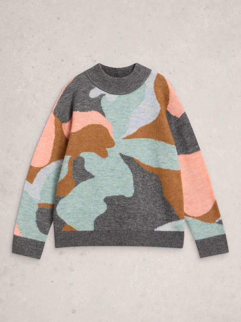 Aria Abstract Camo Print Jumper, Grey/Multi