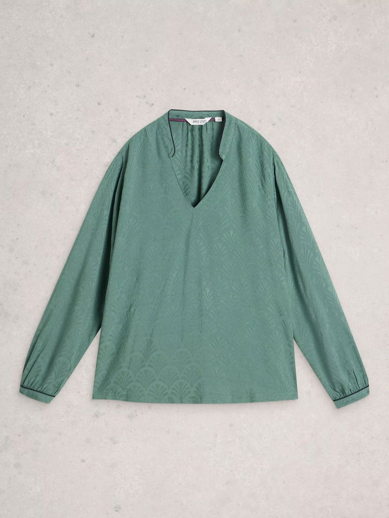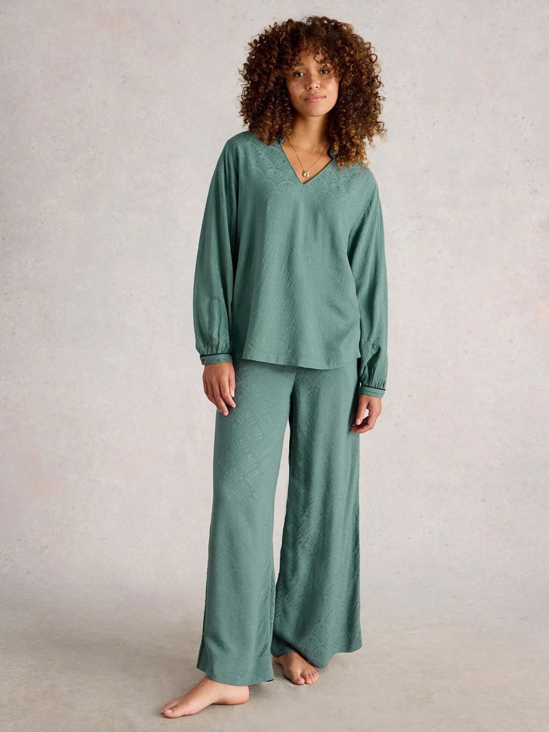 Celia Textured Pyjama Top, Dark Green