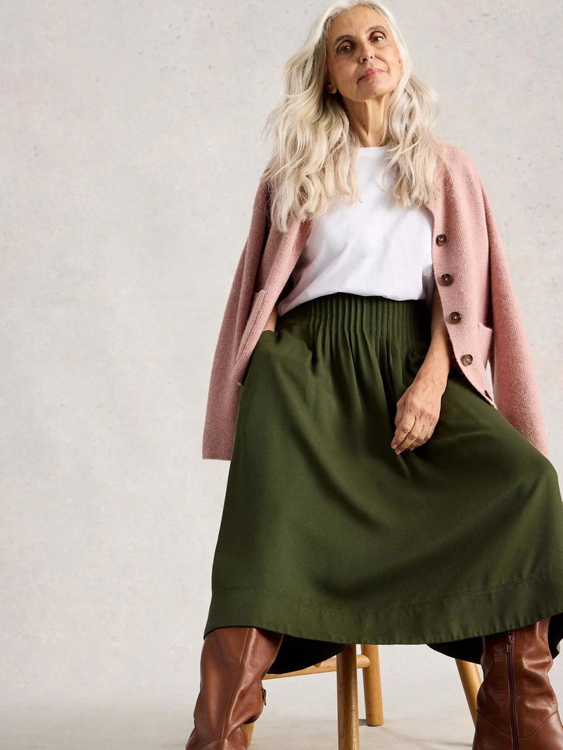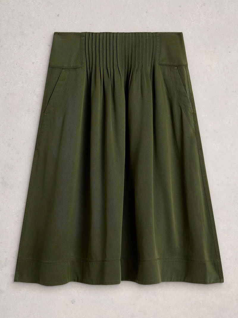 Charlotte Pleated Midi Skirt Containing TENCEL™ Lyocell, Green