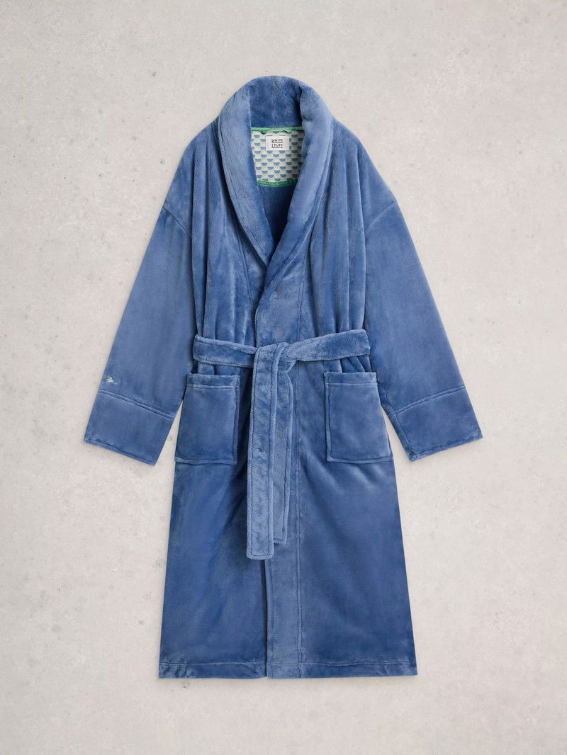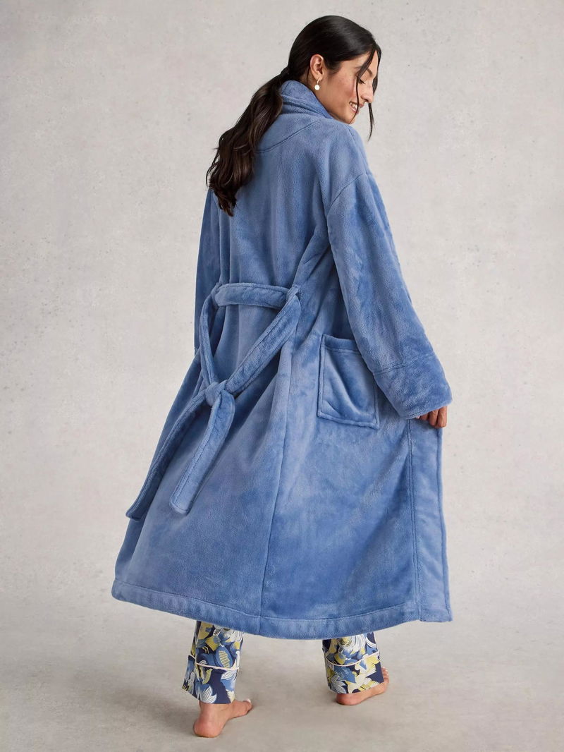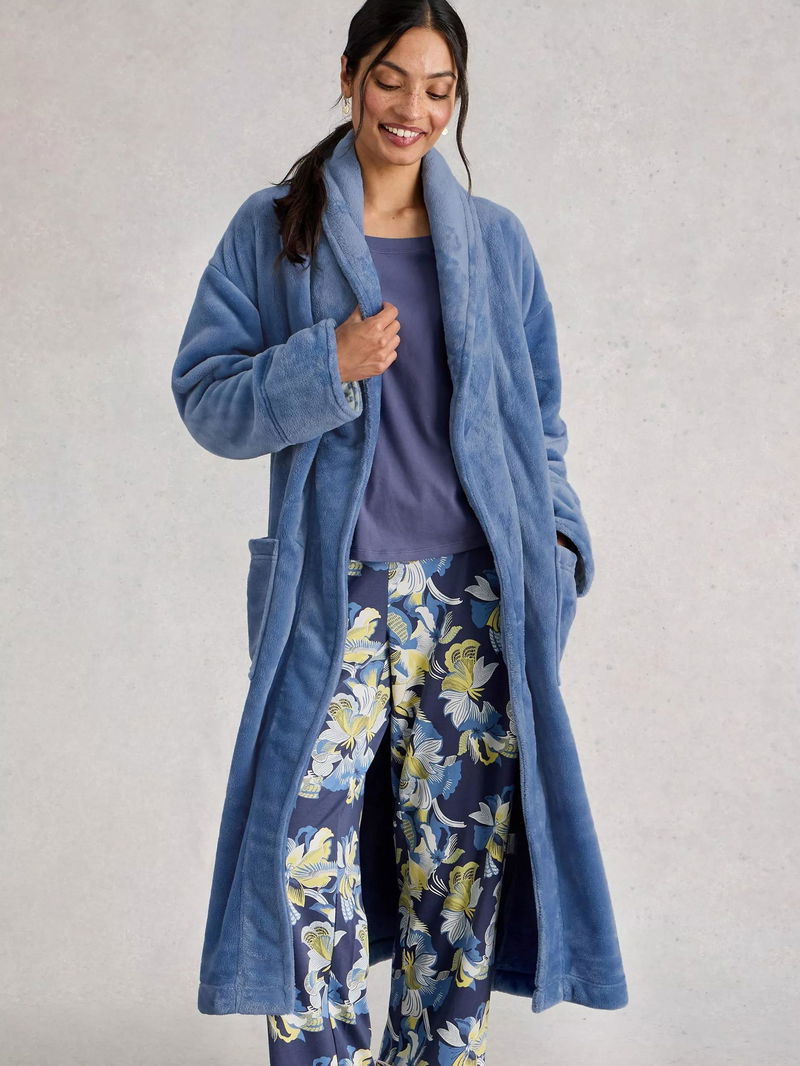 Clover Cosy Shawl Neck Dressing Gown, Light Blue