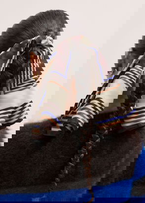 A lightweight wool blend scarf with a striped colour block pattern. Made using recycled materials, helping us to reduce our impact on the planet.